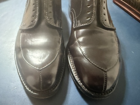 雨シミ後のコードバン靴のメンテナンスとしては多くの方が行なっている方法かと思います。むしろ、普段のケアを時間をかけてやっただけ(笑)のような気もしてます。