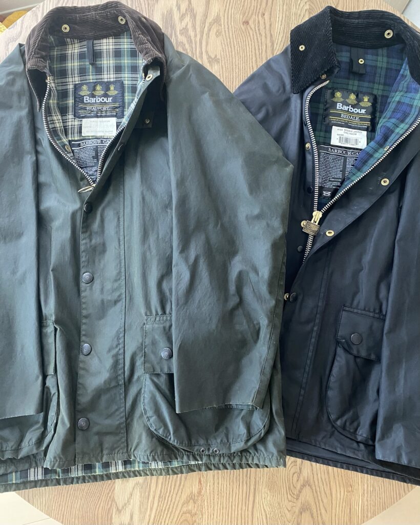 しかも、vintageですので昔のオイルが残っている。どちらもBritish wax-jacket marketさんで購入しました。オイル抜きとリプルーフは店頭で施されているようですのでにおいはそこまで気になりません。