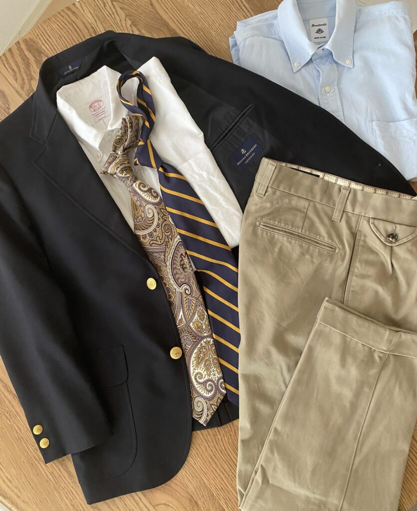 こちらはアメリカントラッドそのものですが、Brooks Brothersの紺ブレザーやボタンダウンシャツ、チノパンを愛用しています。上記のコーデでALDENを履くと決まりすぎですので2点くらいをピックアップしユーロ系のアイテムとmixしてコーデすることが多いです。アメリカ映画からそのまま出てきた人みたいになってしまうので