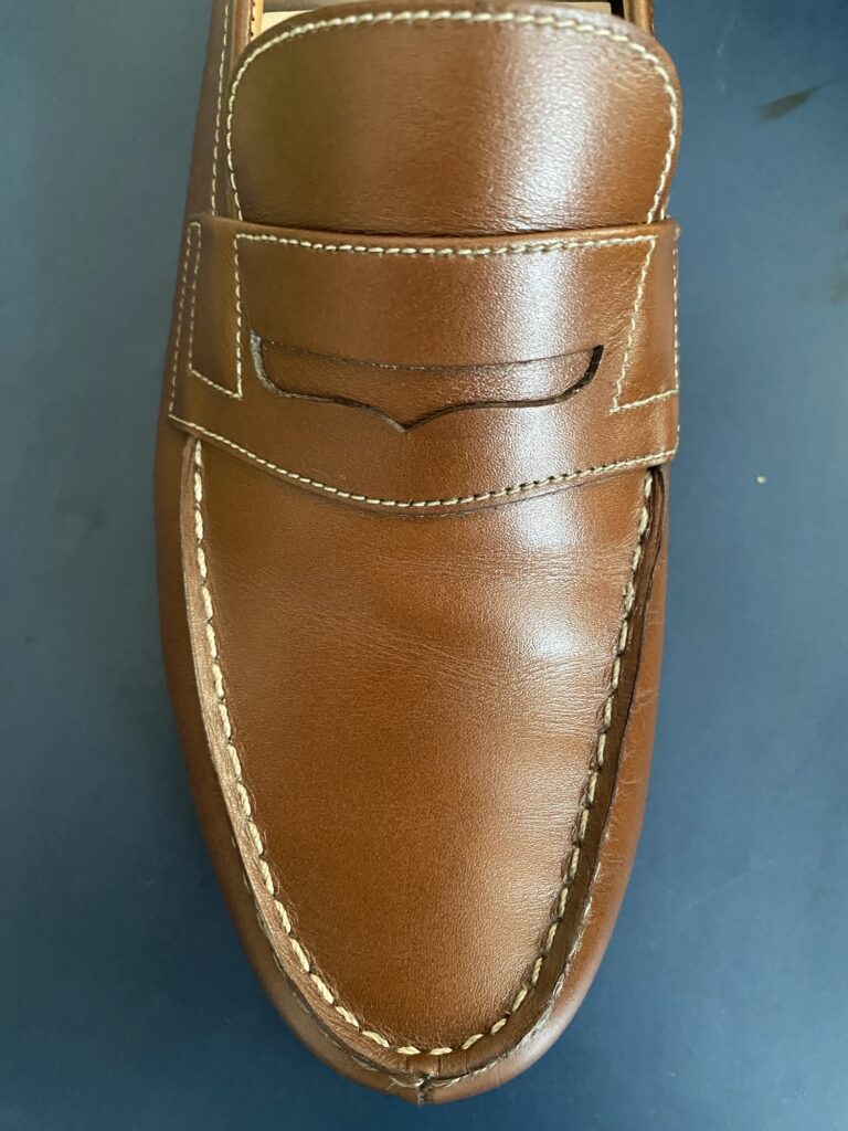 「#180 シグニチャーローファー」は購入時はシーズンモデルだったはずですが現在は通年買えるようです。アッパーステッチと出し縫いがオフホワイトに変更されておりコントラストスッチという名称で販売されています。