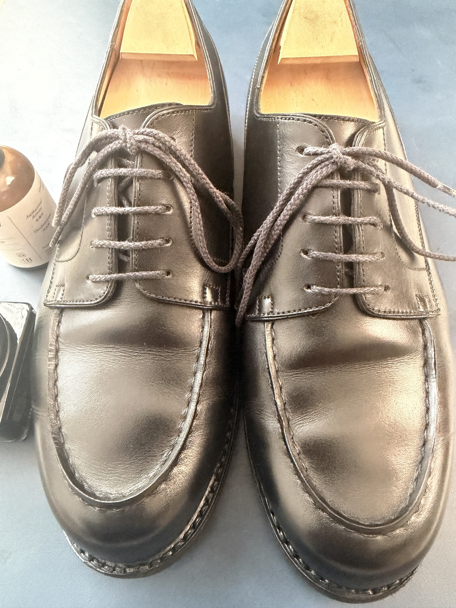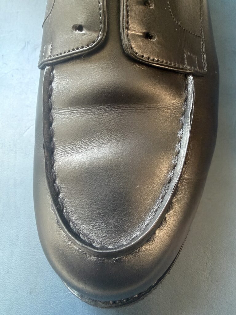 靴磨きと被ったので、クリームやワックスを落とした画像を紹介していきます。革質の経年変化をしっかり見れると思います。(使用感や汚れが見たくない方はスキップしてください笑)