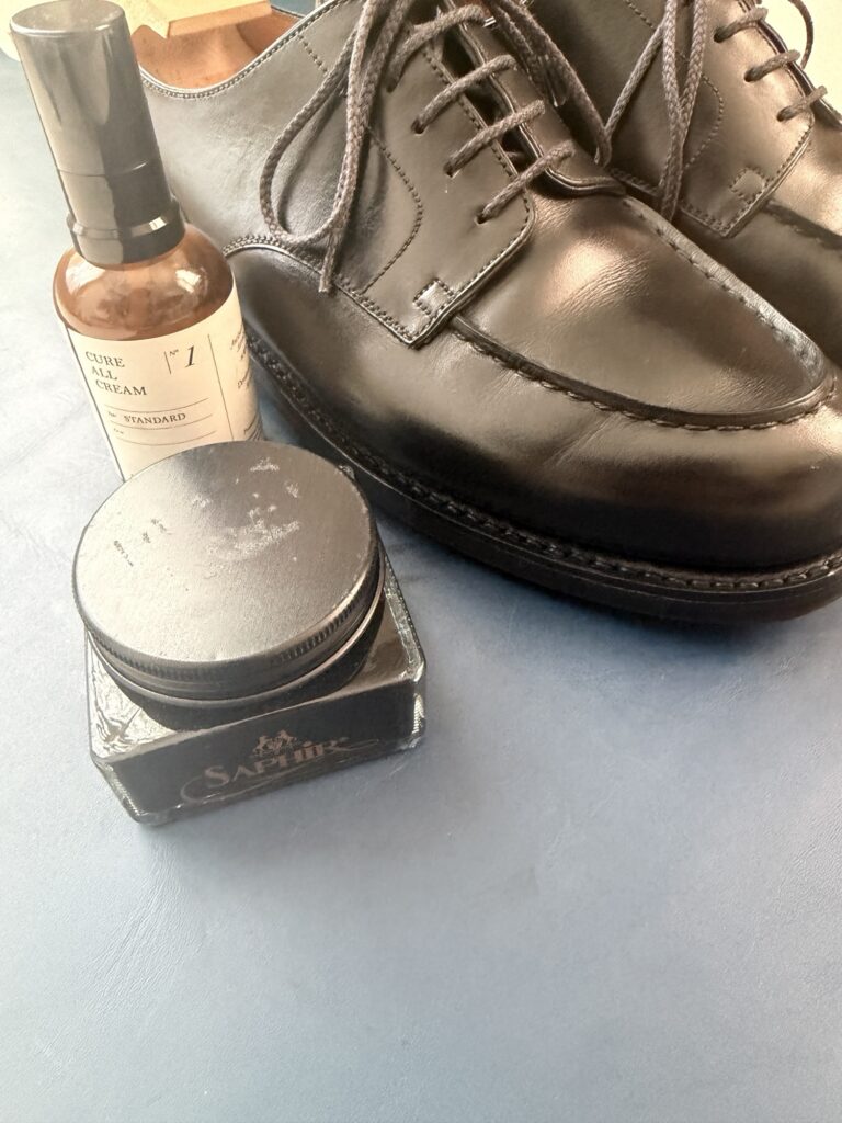 いつもはキュアオールクリームを使用するので艶は出にくいですが、今回はサフィールを使用したので艶が出ています。